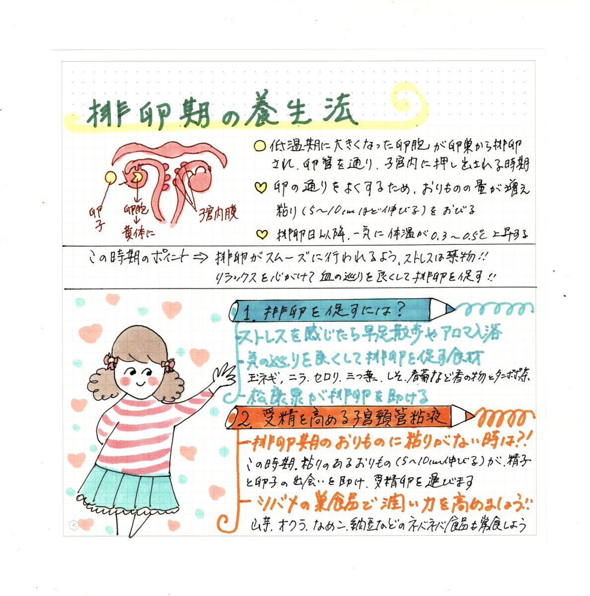 また、受精を高める為に、精子と卵子のスムーズな出会いを高める子宮頸管液がポイントになります。